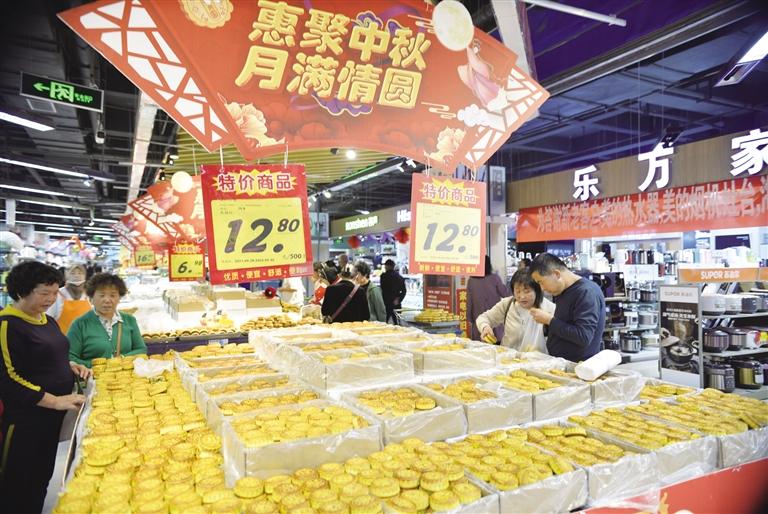 9月28日,在中秋、國慶“雙節”來臨之際,臨夏市消費市場節日氛圍濃厚,人們忙著在市場、超市里選購節日商品,熱熱鬧鬧喜迎佳節。記者?史有東?攝...